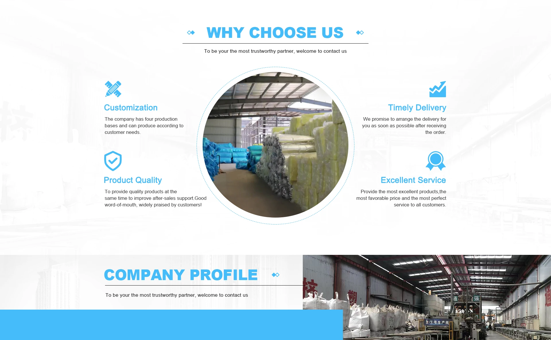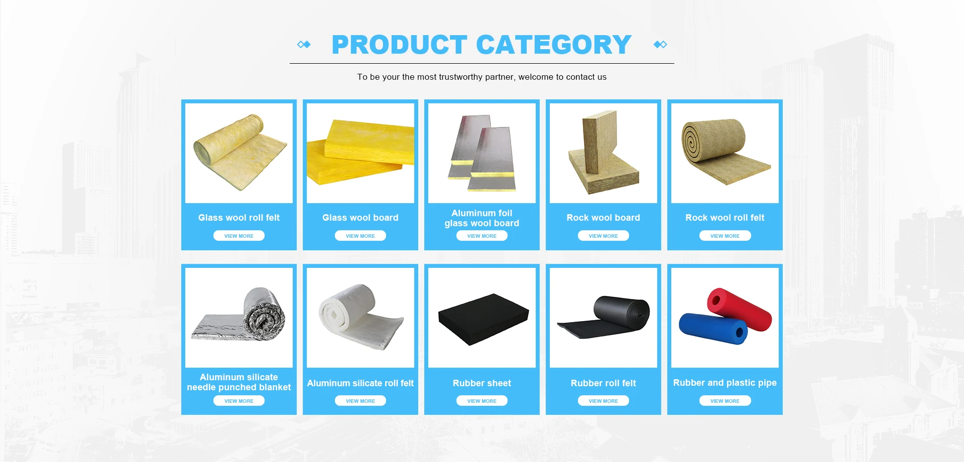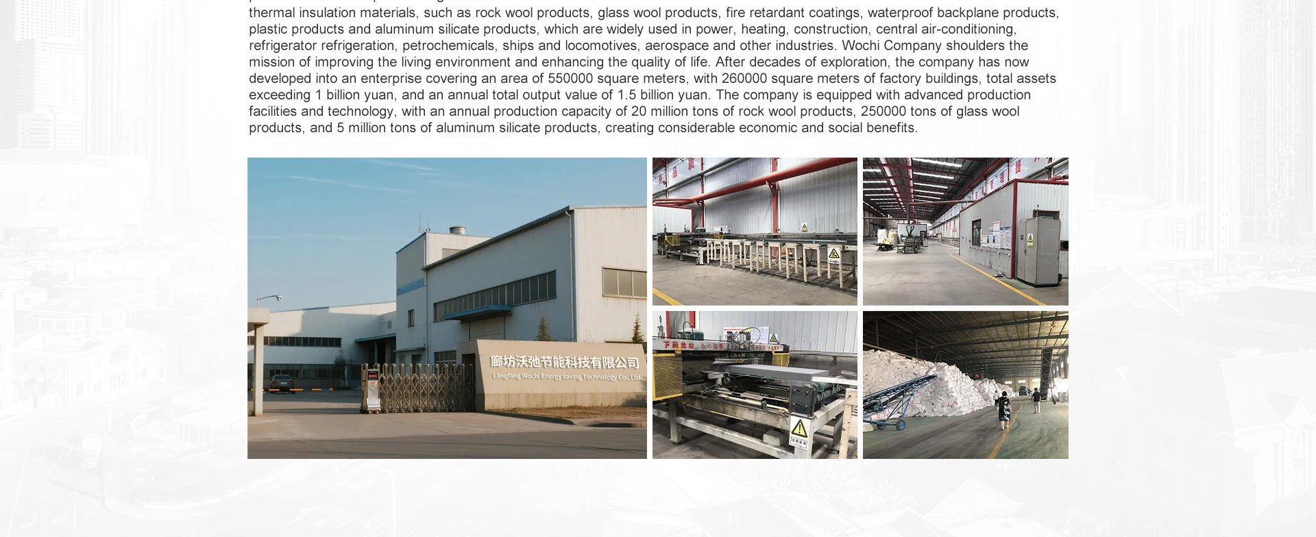 Prodotti principali: Lana di roccia, lana di vetro, silicato di alluminio puro, linee di schiuma, supporto impermeabile